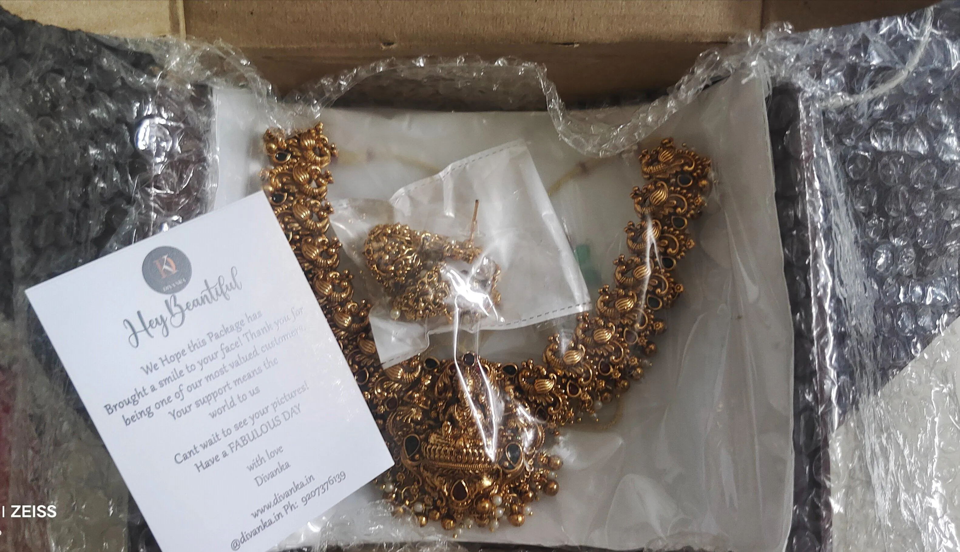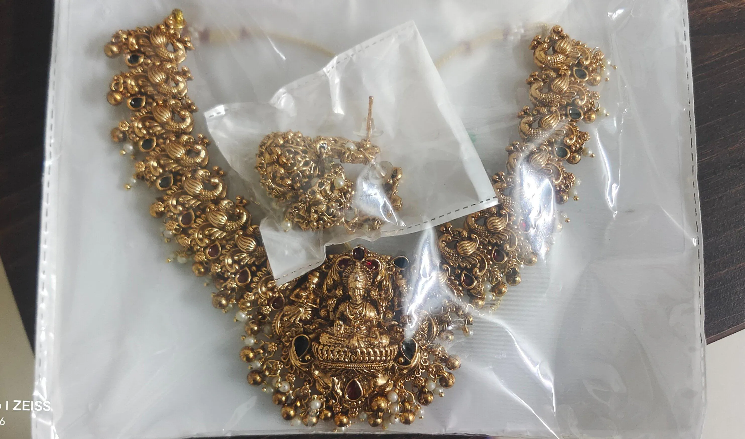 Ideal for weddings, festive occasions, and traditional ceremonies, this necklace set is made for women who love heritage jewellery that carries devotion, elegance, and royal charm in every detail.